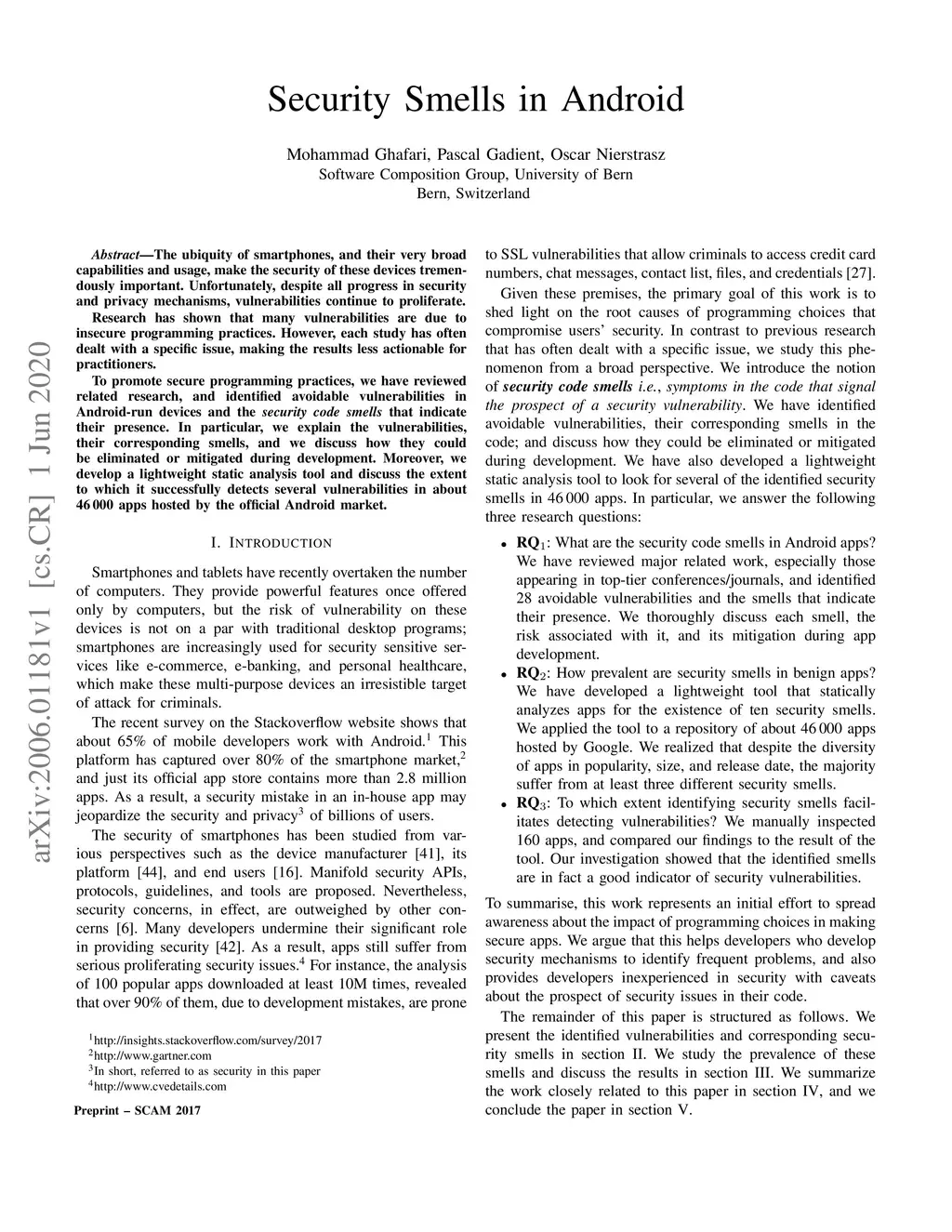 Security Smells in Android