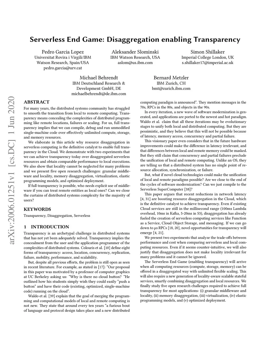 For many years, the distributed systems community has struggled to smooth the transition from local to remote computing. Transparency means concealing the complexities of distributed programming like remote locations, failures or scaling. For us, full transparency implies that we can compile, debug and run unmodified single-machine code over effectively unlimited compute, storage, and memory resources. We elaborate in this article why resource disaggregation in serverless computing is the definitive catalyst to enable full transparency in the Cloud. We demonstrate with two experiments that we can achieve transparency today over disaggregated serverless resources and obtain comparable performance to local executions. We also show that locality cannot be neglected for many problems and we present five open research challenges: granular middleware and locality, memory disaggregation, virtualization, elastic programming models, and optimized deployment. If full transparency is possible, who needs explicit use of middleware if you can treat remote entities as local ones? Can we close the curtains of distributed systems complexity for the majority of users?