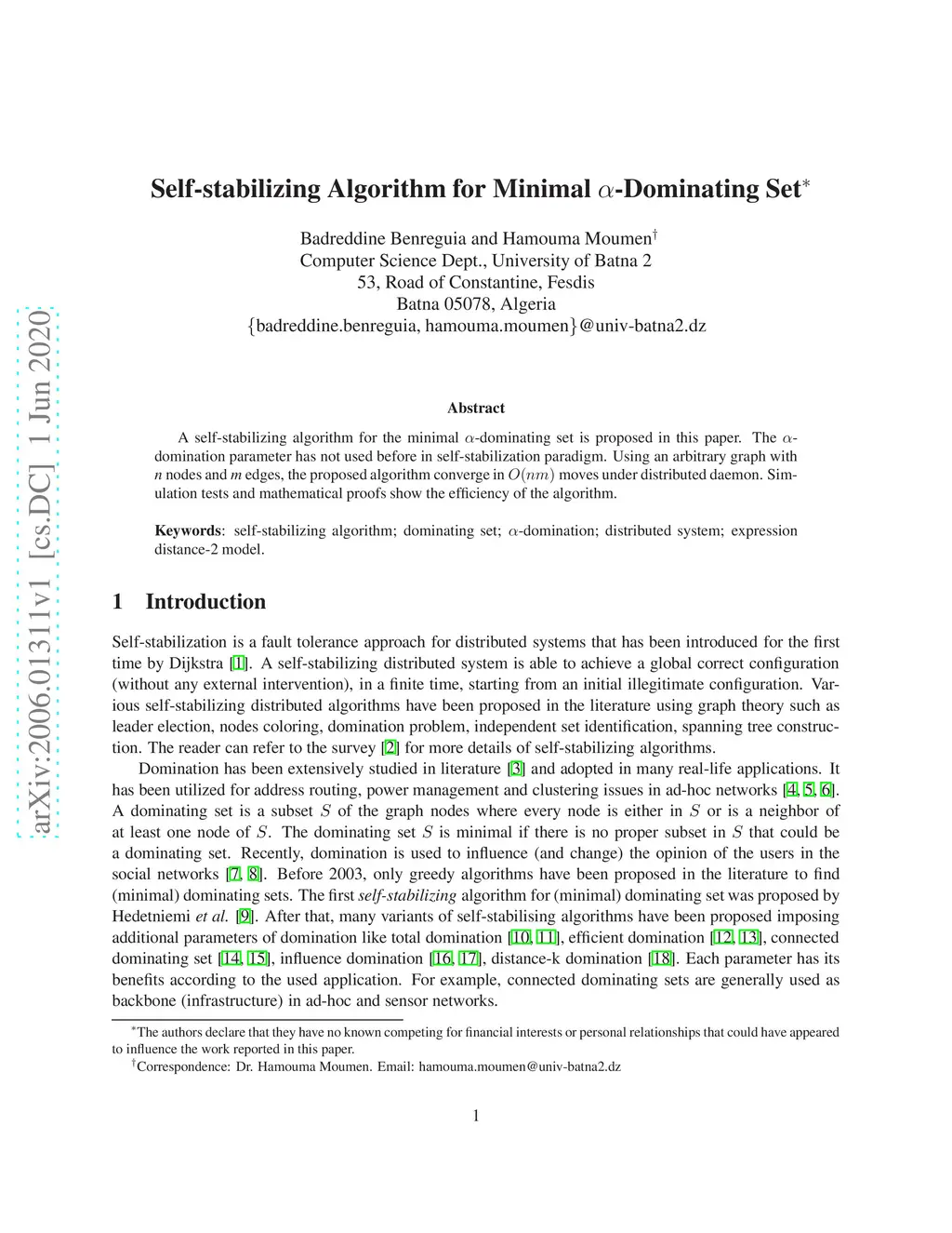 Self-stabilizing Algorithm for Minimal -Dominating Set