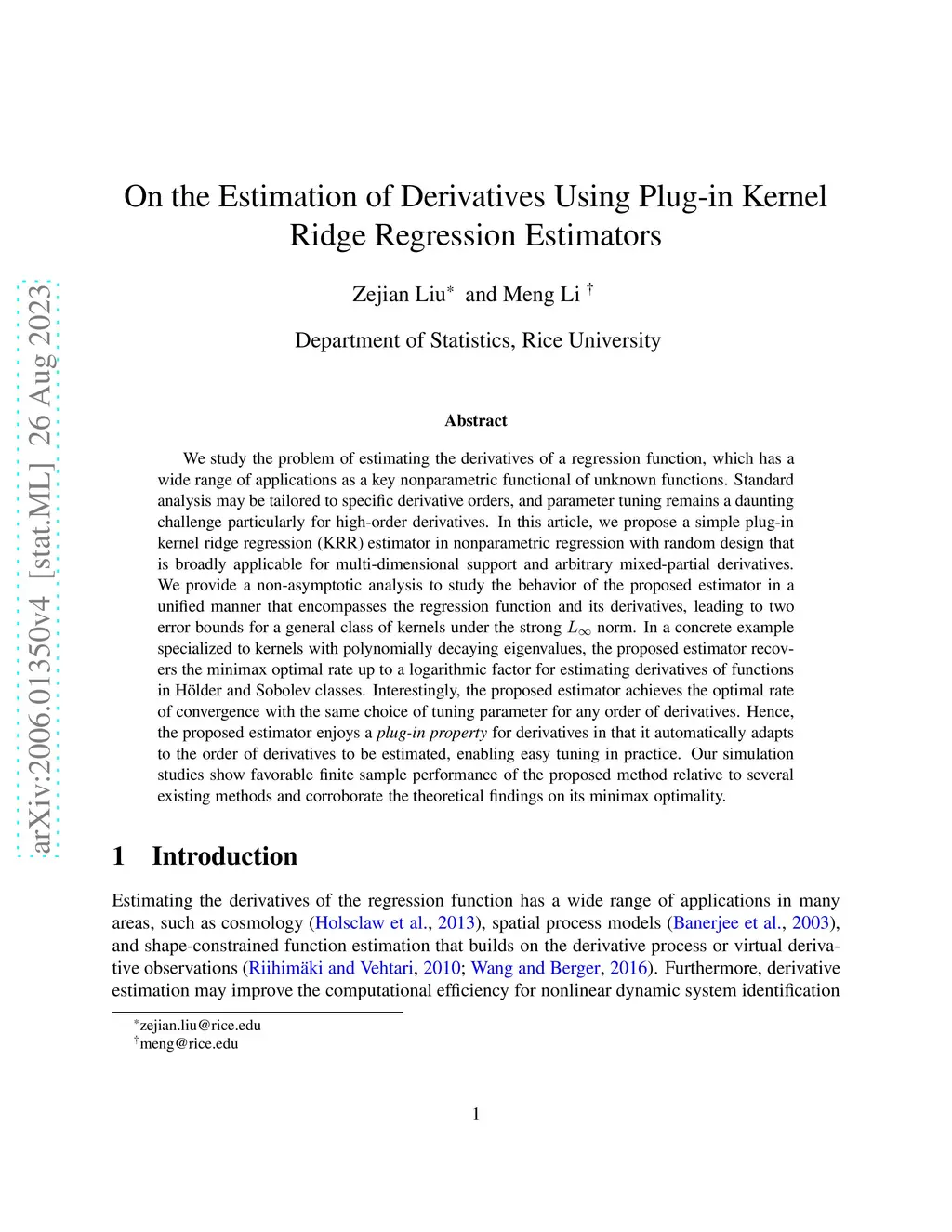 On the Estimation of Derivatives Using Plug-in Kernel Ridge Regression