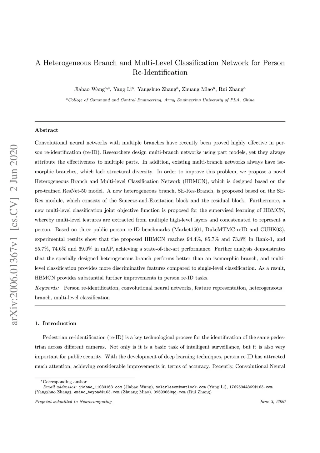 A heterogeneous branch and multi-level classification network for person