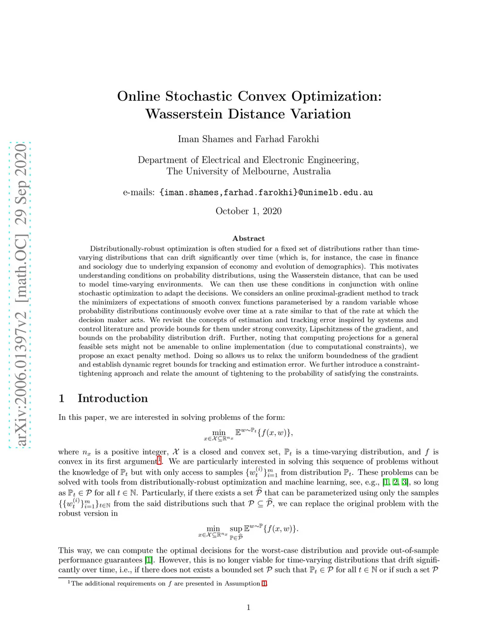 Online Stochastic Convex Optimization: Wasserstein Distance Variation