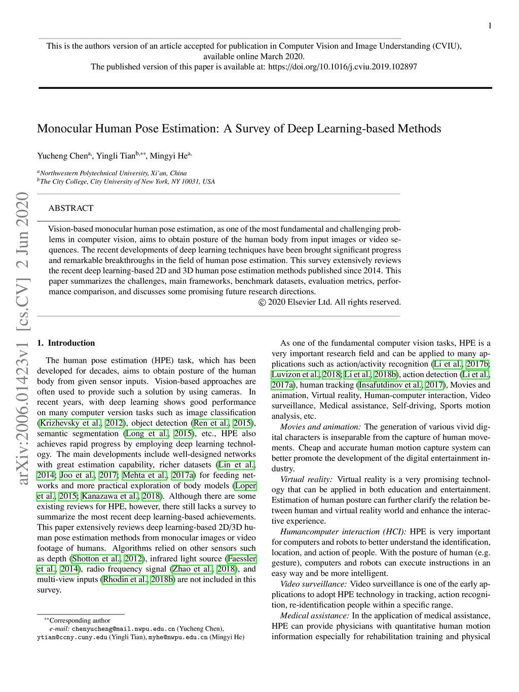 Monocular Human Pose Estimation: A Survey of Deep Learning-based Methods