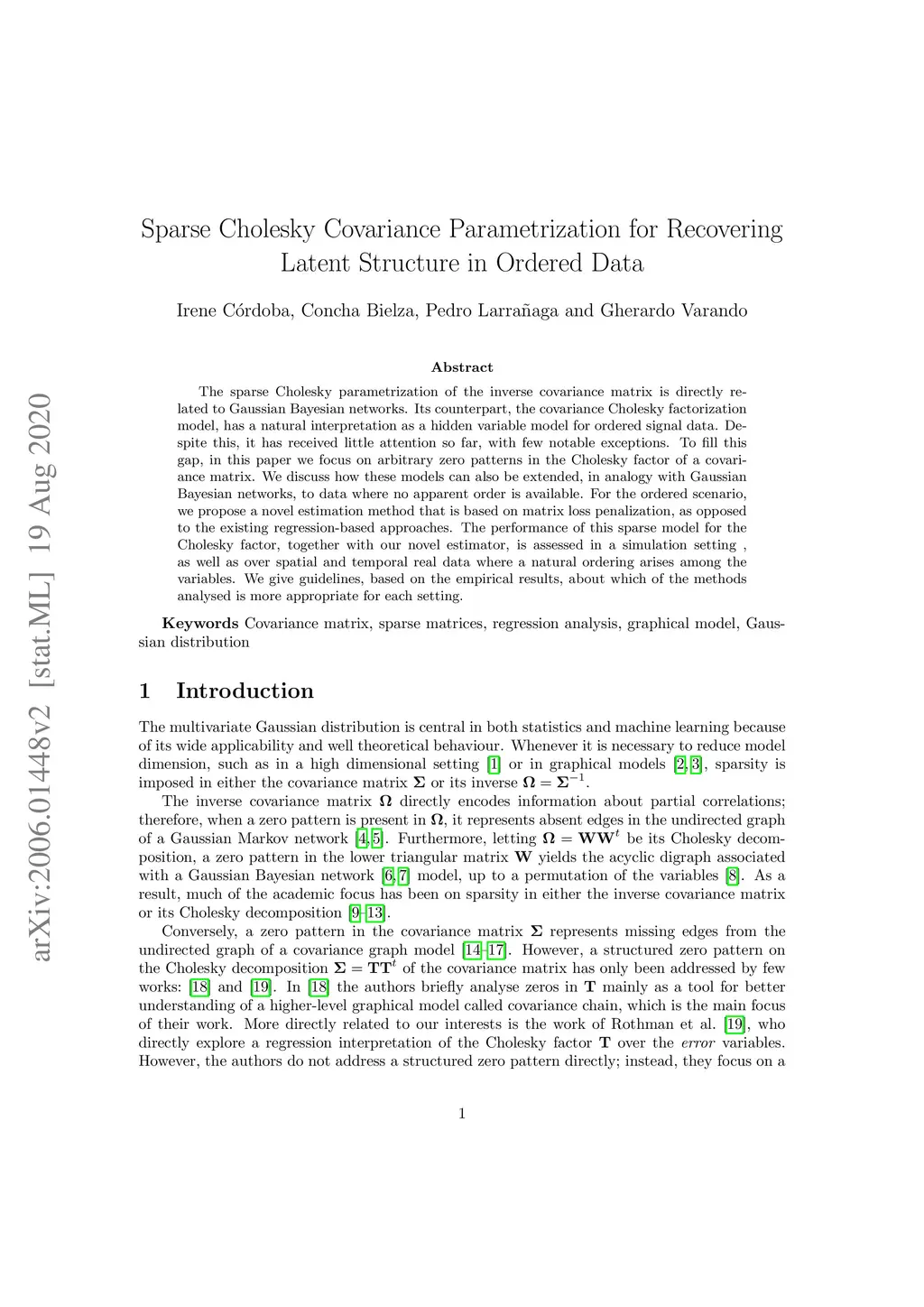 The sparse Cholesky parametrization of the inverse covariance matrix can be interpreted as a Gaussian Bayesian network; however its counterpart, the covariance Cholesky factor, has received, with few notable exceptions, little attention so far, despite having a natural interpretation as a hidden variable model for ordered signal data. To fill this gap, in this paper we focus on arbitrary zero patterns in the Cholesky factor of a covariance matrix. We discuss how these models can also be extended, in analogy with Gaussian Bayesian networks, to data where no apparent order is available. For the ordered scenario, we propose a novel estimation method that is based on matrix loss penalization, as opposed to the existing regression-based approaches. The performance of this sparse model for the Cholesky factor, together with our novel estimator, is assessed in a simulation setting, as well as over spatial and temporal real data where a natural ordering arises among the variables. We give guidelines, based on the empirical results, about which of the methods analysed is more appropriate for each setting.