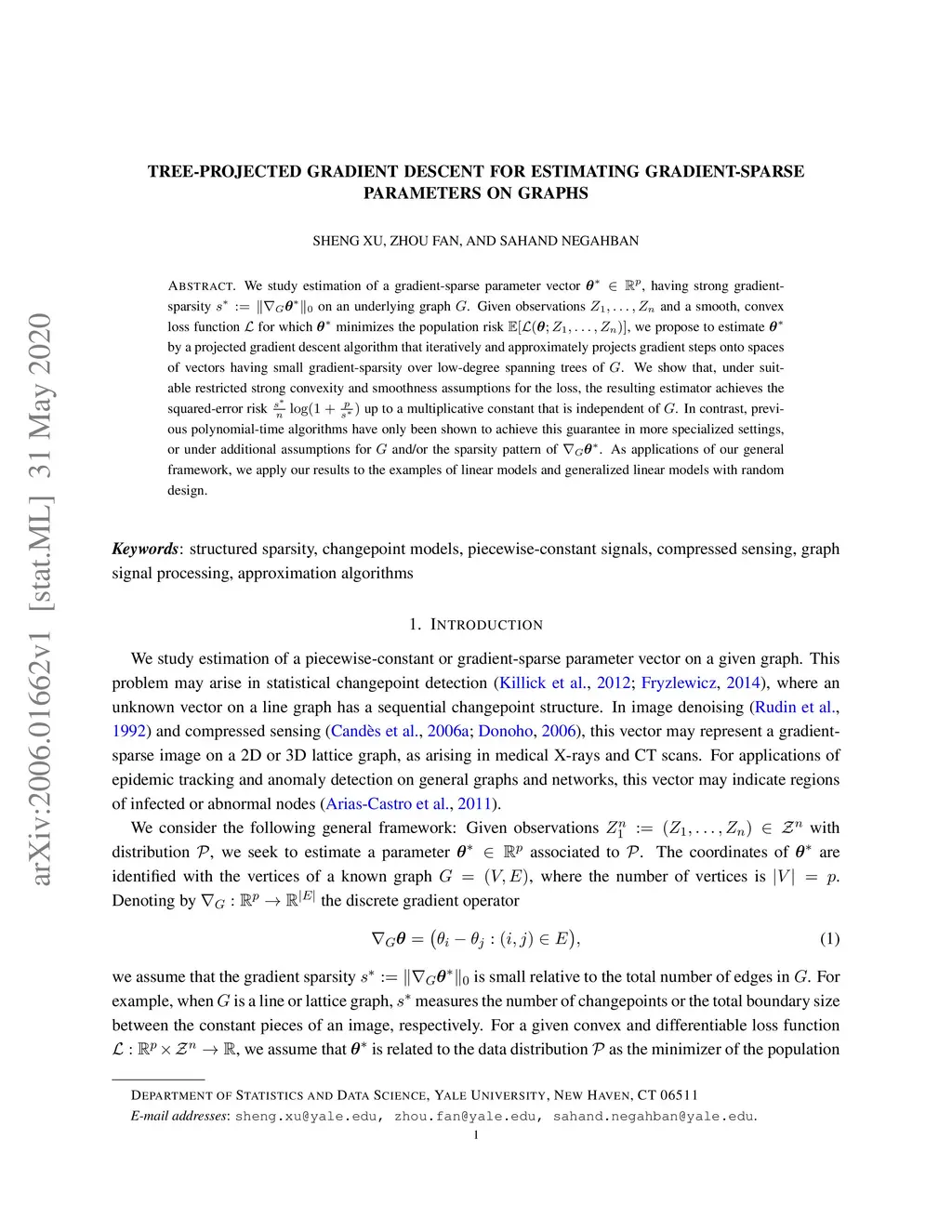 We study estimation of a gradient-sparse parameter vector , having strong gradient-sparsity on an underlying graph . Given observations and a smooth, convex loss function for which minimizes the population risk , we propose to estimate by a projected gradient descent algorithm that iteratively and approximately projects gradient steps onto spaces of vectors having small gradient-sparsity over low-degree spanning trees of . We show that, under suitable restricted strong convexity and smoothness assumptions for the loss, the resulting estimator achieves the squared-error risk up to a multiplicative constant that is independent of . In contrast, previous polynomial-time algorithms have only been shown to achieve this guarantee in more specialized settings, or under additional assumptions for and/or the sparsity pattern of . As applications of our general framework, we apply our results to the examples of linear models and generalized linear models with random design.