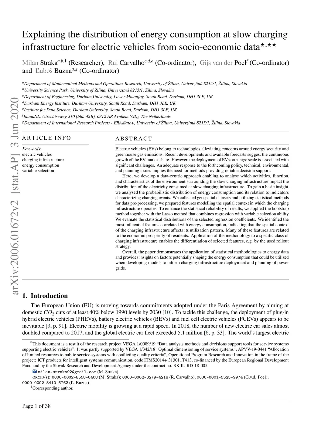 Here, we develop a data-centric approach enabling to analyse which activities, function, and characteristics of the environment surrounding the slow charging infrastructure impact the distribution of the electricity consumed at slow charging infrastructure. To gain a basic insight, we analysed the probabilistic distribution of energy consumption and its relation to indicators characterizing charging events. We collected geospatial datasets and utilizing statistical methods for data pre-processing, we prepared features modelling the spatial context in which the charging infrastructure operates. To enhance the statistical reliability of results, we applied the bootstrap method together with the Lasso method that combines regression with variable selection ability. We evaluate the statistical distributions of the selected regression coefficients. We identified the most influential features correlated with energy consumption, indicating that the spatial context of the charging infrastructure affects its utilization pattern. Many of these features are related to the economic prosperity of residents. Application of the methodology to a specific class of charging infrastructure enables the differentiation of selected features, e.g. by the used rollout strategy. Overall, the paper demonstrates the application of statistical methodologies to energy data and provides insights on factors potentially shaping the energy consumption that could be utilized when developing models to inform charging infrastructure deployment and planning of power grids.