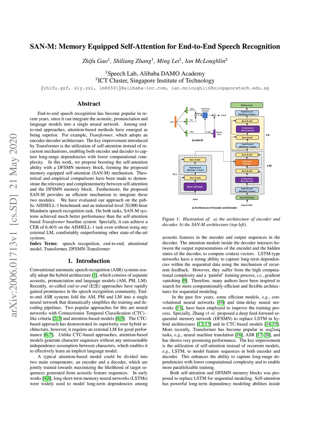 SAN-M: Memory Equipped Self-Attention for End-to-End Speech Recognition