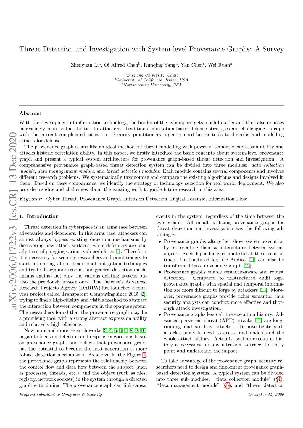 With the development of information technology, the border of the cyberspace gets much broader, exposing more and more vulnerabilities to attackers. Traditional mitigation-based defence strategies are challenging to cope with the current complicated situation. Security practitioners urgently need better tools to describe and modelling attacks for defence. The provenance graph seems like an ideal method for threat modelling with powerful semantic expression ability and attacks historic correlation ability. In this paper, we firstly introduce the basic concepts about system-level provenance graph and proposed typical system architecture for provenance graph-based threat detection and investigation. A comprehensive provenance graph-based threat detection system can be divided into three modules, namely, "data collection module", "data management module", and "threat detection modules". Each module contains several components and involves many research problem. We systematically analyzed the algorithms and design details involved. By comparison, we give the strategy of technology selection. Moreover, we pointed out the shortcomings of the existing work for future improvement.