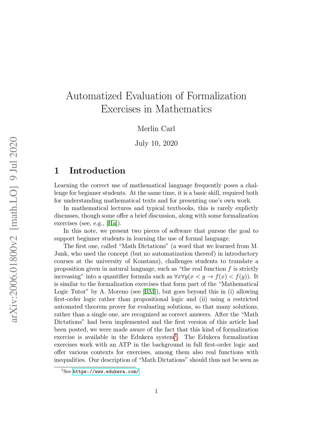 Automatized Evaluation of Formalization Exercises in Mathematics