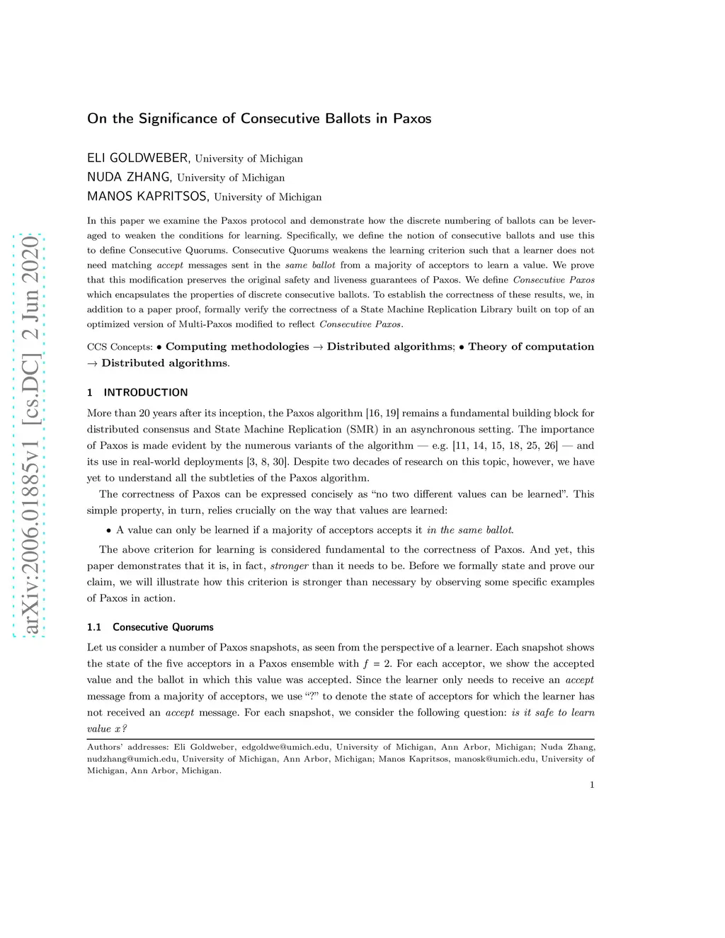 In this paper we examine the Paxos protocol and demonstrate how the discrete numbering of ballots can be leveraged to weaken the conditions for learning. Specifically, we define the notion of consecutive ballots and use this to define Consecutive Quorums. Consecutive Quorums weakens the learning criterion such that a learner does not need matching messages sent in the from a majority of acceptors to learn a value. We prove that this modification preserves the original safety and liveness guarantees of Paxos. We define which encapsulates the properties of discrete consecutive ballots. To establish the correctness of these results, we, in addition to a paper proof, formally verify the correctness of a State Machine Replication Library built on top of an optimized version of Multi-Paxos modified to reflect .