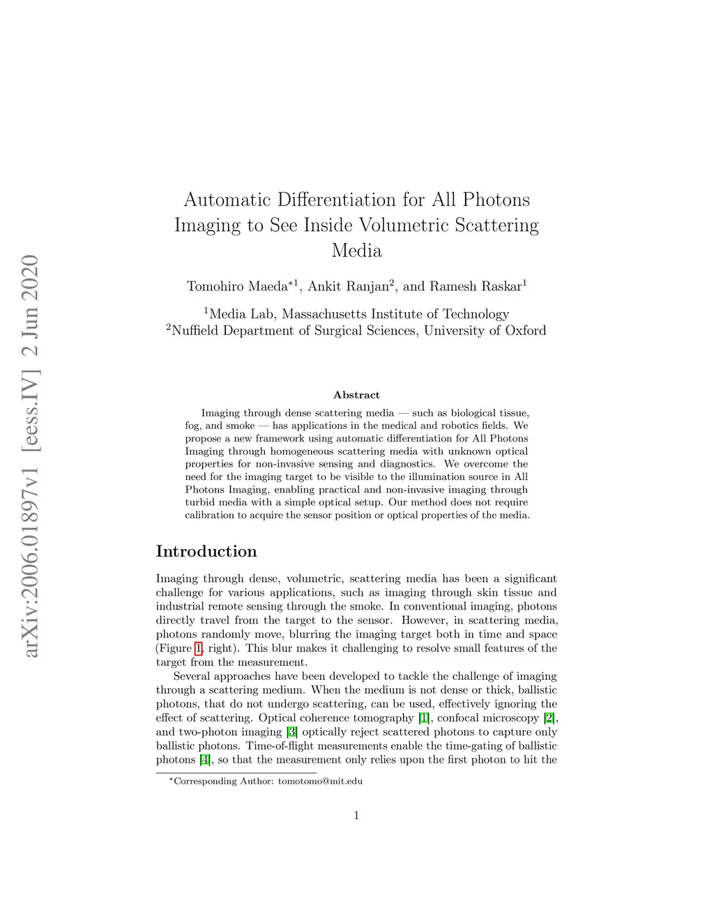 Imaging through dense scattering media - such as biological tissue, fog, and smoke - has applications in the medical and robotics fields. We propose a new framework using automatic differentiation for All Photons Imaging through homogeneous scattering media with unknown optical properties for non-invasive sensing and diagnostics. We overcome the need for the imaging target to be visible to the illumination source in All Photons Imaging, enabling practical and non-invasive imaging through turbid media with a simple optical setup. Our method does not require calibration to acquire the sensor position or optical properties of the media.