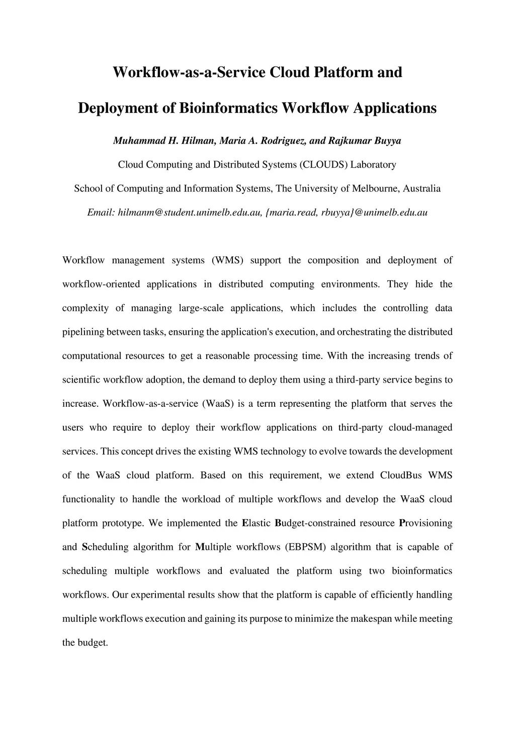 Workflow-as-a-Service Cloud Platform and Deployment of Bioinformatics