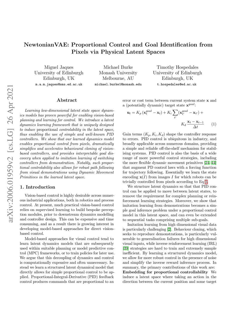 NewtonianVAE: Proportional Control and Goal Identification from Pixels