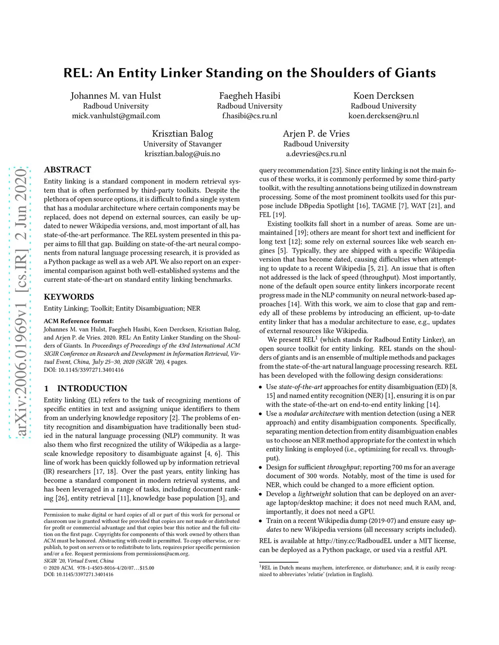 REL: An Entity Linker Standing on the Shoulders of Giants