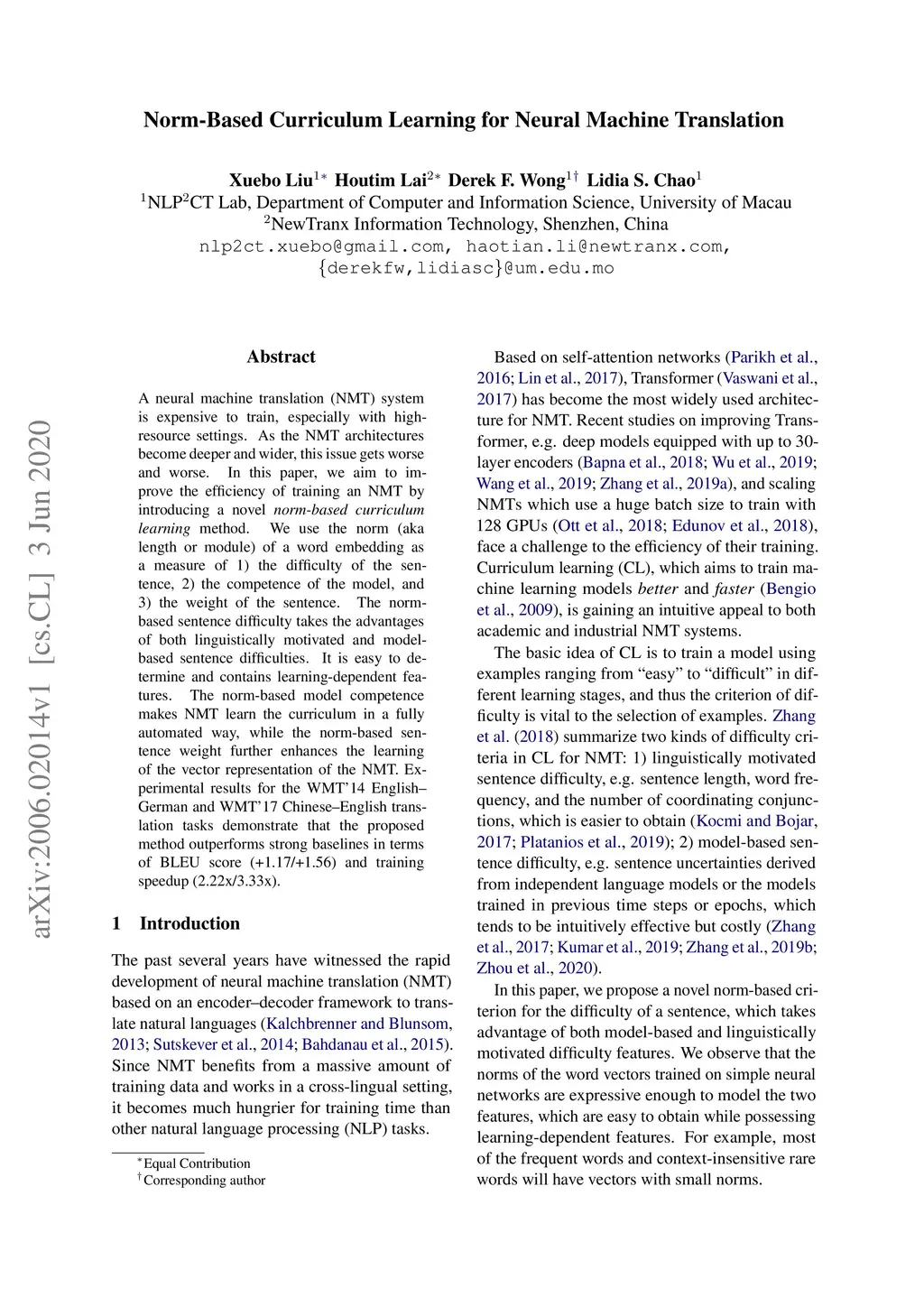 Norm-Based Curriculum Learning for Neural Machine Translation