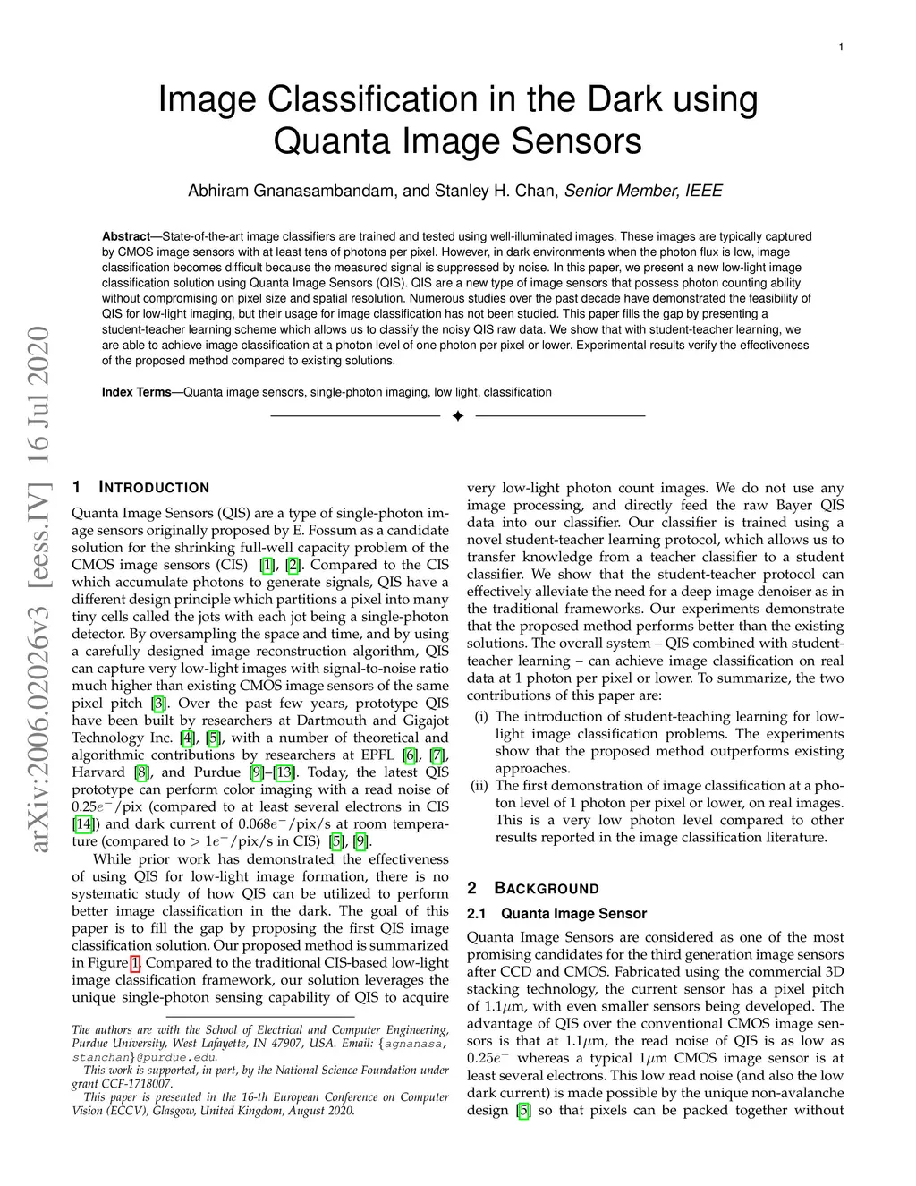 State-of-the-art image classifiers are trained and tested using well-illuminated images. These images are typically captured by CMOS image sensors with at least tens of photons per pixel. However, in dark environments when the photon flux is low, image classification becomes difficult because the measured signal is suppressed by noise. In this paper, we present a new low-light image classification solution using Quanta Image Sensors (QIS). QIS are a new type of image sensors that possess photon counting ability without compromising on pixel size and spatial resolution. Numerous studies over the past decade have demonstrated the feasibility of QIS for low-light imaging, but their usage for image classification has not been studied. This paper fills the gap by presenting a student-teacher learning scheme which allows us to classify the noisy QIS raw data. We show that with student-teacher learning, we are able to achieve image classification at a photon level of one photon per pixel or lower. Experimental results verify the effectiveness of the proposed method compared to existing solutions.