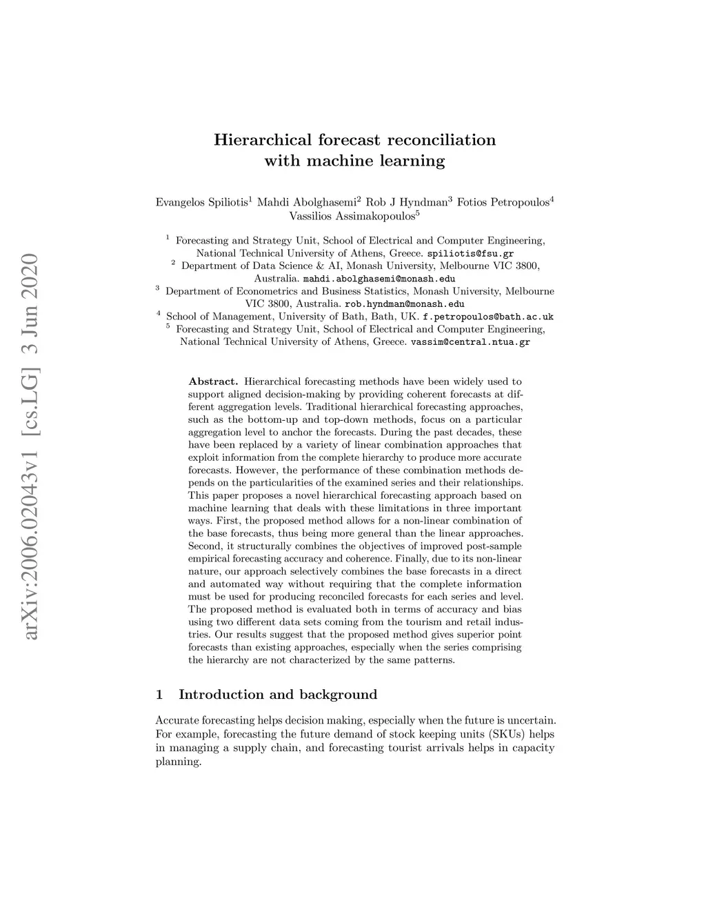Hierarchical forecasting methods have been widely used to support aligned decision-making by providing coherent forecasts at different aggregation levels. Traditional hierarchical forecasting approaches, such as the bottom-up and top-down methods, focus on a particular aggregation level to anchor the forecasts. During the past decades, these have been replaced by a variety of linear combination approaches that exploit information from the complete hierarchy to produce more accurate forecasts. However, the performance of these combination methods depends on the particularities of the examined series and their relationships. This paper proposes a novel hierarchical forecasting approach based on machine learning that deals with these limitations in three important ways. First, the proposed method allows for a non-linear combination of the base forecasts, thus being more general than the linear approaches. Second, it structurally combines the objectives of improved post-sample empirical forecasting accuracy and coherence. Finally, due to its non-linear nature, our approach selectively combines the base forecasts in a direct and automated way without requiring that the complete information must be used for producing reconciled forecasts for each series and level. The proposed method is evaluated both in terms of accuracy and bias using two different data sets coming from the tourism and retail industries. Our results suggest that the proposed method gives superior point forecasts than existing approaches, especially when the series comprising the hierarchy are not characterized by the same patterns.
