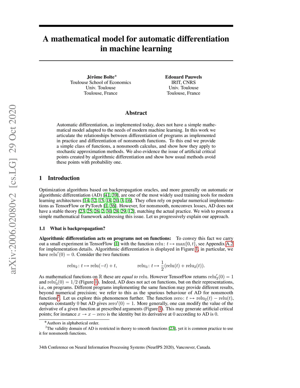 A mathematical model for automatic differentiation in machine learning