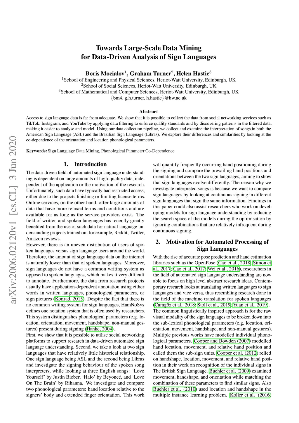 Access to sign language data is far from adequate. We show that it is possible to collect the data from social networking services such as TikTok, Instagram, and YouTube by applying data filtering to enforce quality standards and by discovering patterns in the filtered data, making it easier to analyse and model. Using our data collection pipeline, we collect and examine the interpretation of songs in both the American Sign Language (ASL) and the Brazilian Sign Language (Libras). We explore their differences and similarities by looking at the co-dependence of the orientation and location phonological parameters