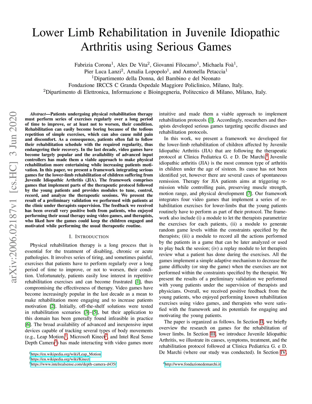 Lower Limb Rehabilitation in Juvenile Idiopathic Arthritis using Serious