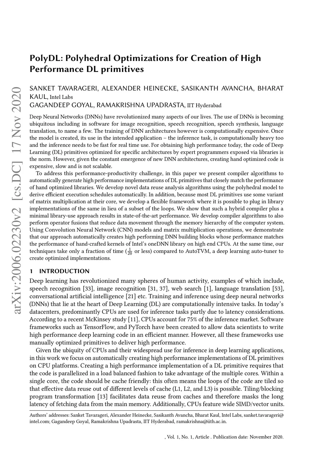 PolyDL: Polyhedral Optimizations for Creation of High Performance DL