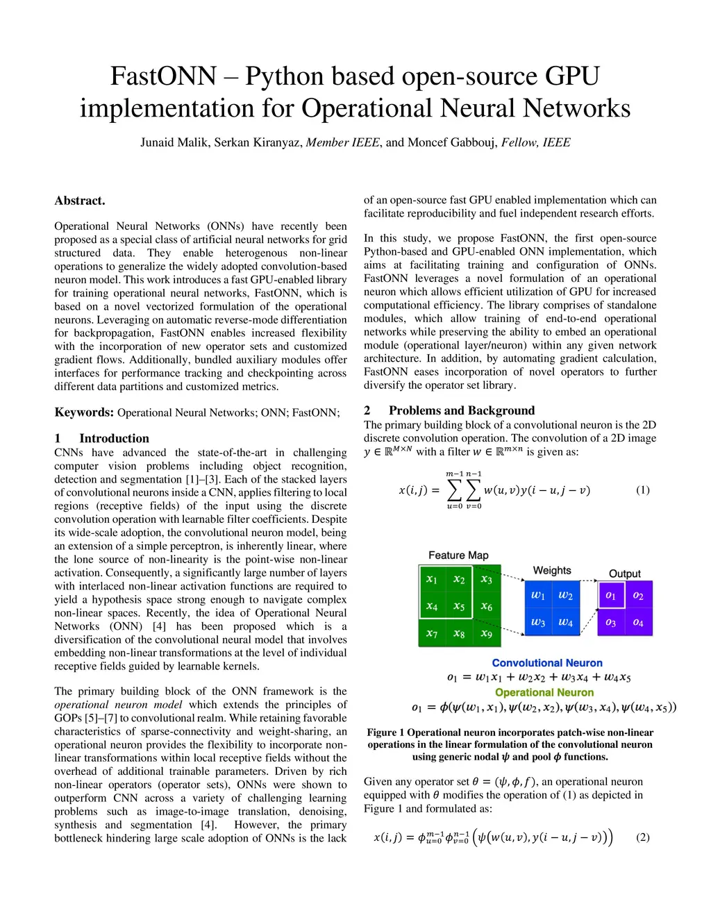 Operational Neural Networks (ONNs) have recently been proposed as a special class of artificial neural networks for grid structured data. They enable heterogenous non-linear operations to generalize the widely adopted convolution-based neuron model. This work introduces a fast GPU-enabled library for training operational neural networks, FastONN, which is based on a novel vectorized formulation of the operational neurons. Leveraging on automatic reverse-mode differentiation for backpropagation, FastONN enables increased flexibility with the incorporation of new operator sets and customized gradient flows. Additionally, bundled auxiliary modules offer interfaces for performance tracking and checkpointing across different data partitions and customized metrics.