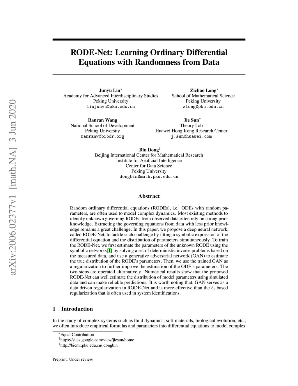 RODE-Net: Learning Ordinary Differential Equations with Randomness from