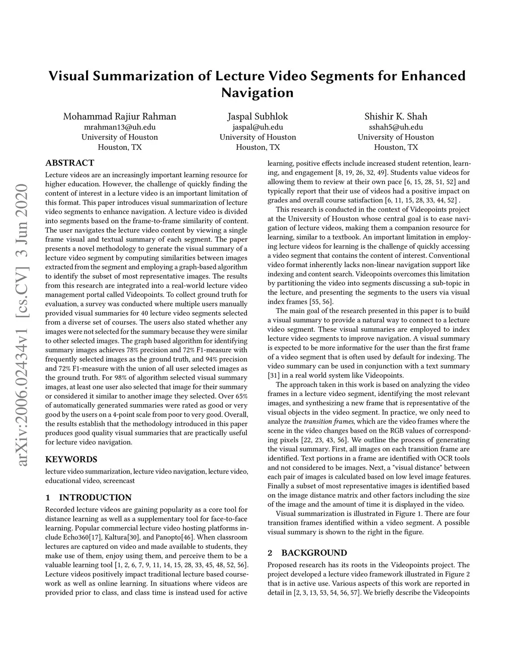 Visual Summarization of Lecture Video Segments for Enhanced Navigation