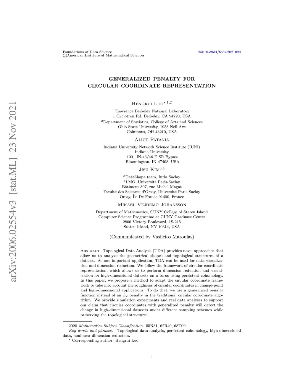 Topological Data Analysis (TDA) provides novel approaches that allow us to analyze the geometrical shapes and topological structures of a dataset. As one important application, TDA can be used for data visualization and dimension reduction. We follow the framework of circular coordinate representation, which allows us to perform dimension reduction and visualization for high-dimensional datasets on a torus using persistent cohomology. In this paper, we propose a method to adapt the circular coordinate framework to take into account the roughness of circular coordinates in change-point and high-dimensional applications. We use a generalized penalty function instead of an penalty in the traditional circular coordinate algorithm. We provide simulation experiments and real data analysis to support our claim that circular coordinates with generalized penalty will detect the change in high-dimensional datasets under different sampling schemes while preserving the topological structures.