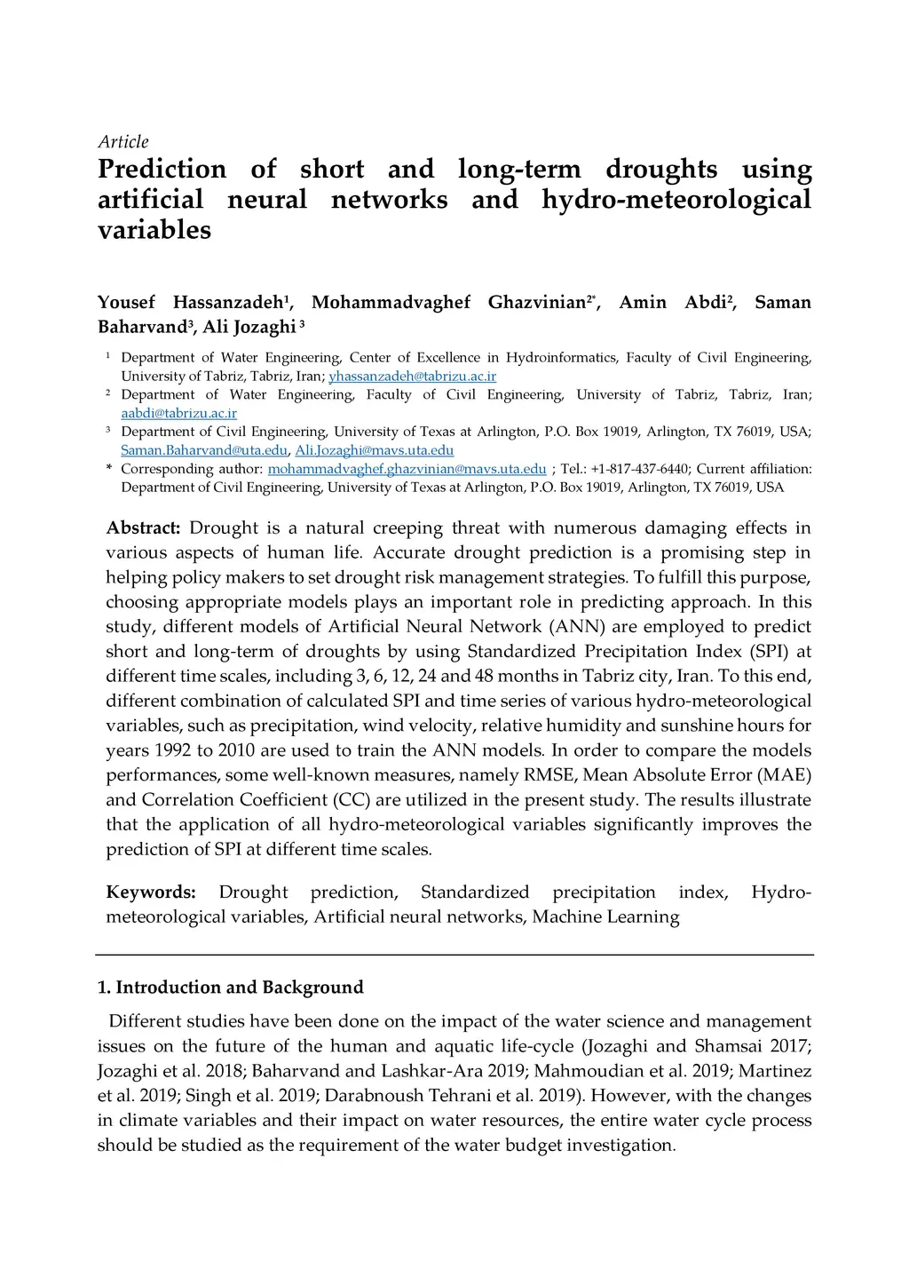 Prediction of short and long-term droughts using artificial neural