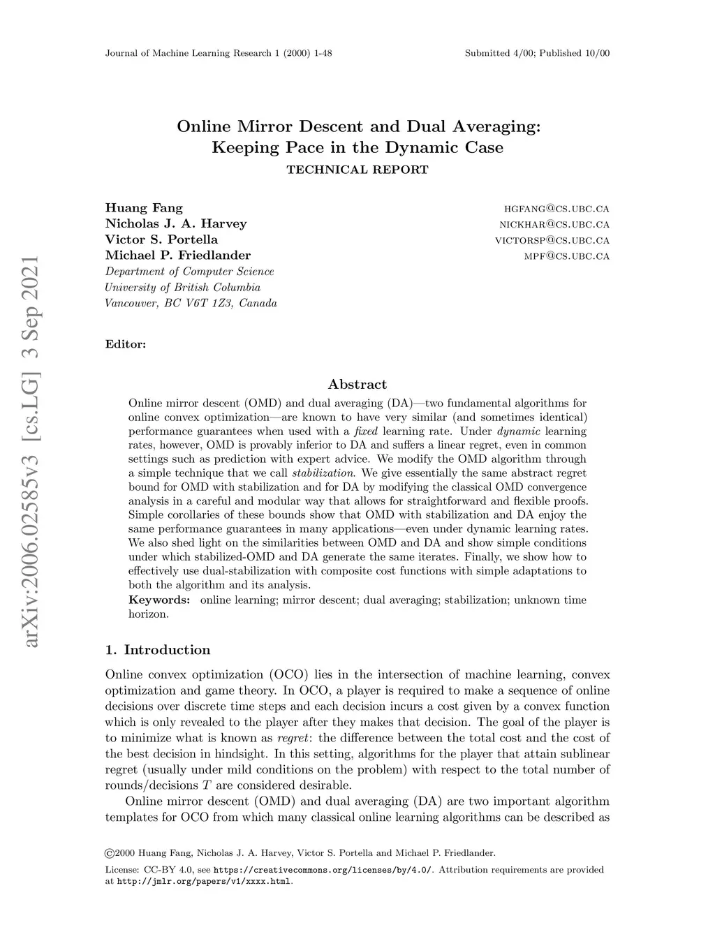 Online mirror descent (OMD) and dual averaging (DA)---two fundamental algorithms for online convex optimization---are known to have very similar (and sometimes identical) performance guarantees when used with a fixed learning rate. Under dynamic learning rates, however, OMD is provably inferior to DA and suffers a linear regret, even in common settings such as prediction with expert advice. We modify the OMD algorithm through a simple technique that we call stabilization. We give essentially the same abstract regret bound for OMD with stabilization and for DA by modifying the classical OMD convergence analysis in a careful and modular way that allows for straightforward and flexible proofs. Simple corollaries of these bounds show that OMD with stabilization and DA enjoy the same performance guarantees in many applications---even under dynamic learning rates. We also shed light on the similarities between OMD and DA and show simple conditions under which stabilized-OMD and DA generate the same iterates.