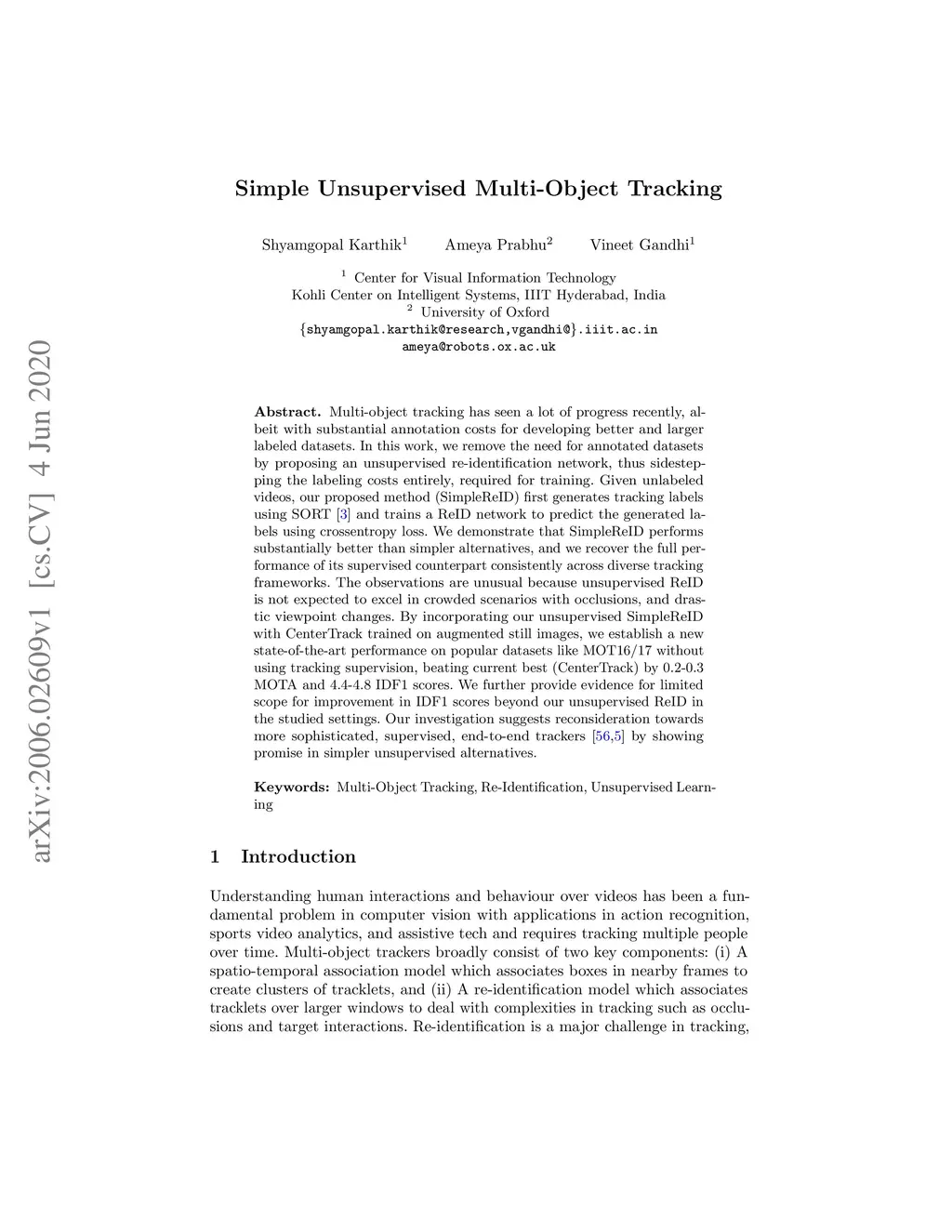 Multi-object tracking has seen a lot of progress recently, albeit with substantial annotation costs for developing better and larger labeled datasets. In this work, we remove the need for annotated datasets by proposing an unsupervised re-identification network, thus sidestepping the labeling costs entirely, required for training. Given unlabeled videos, our proposed method (SimpleReID) first generates tracking labels using SORT and trains a ReID network to predict the generated labels using crossentropy loss. We demonstrate that SimpleReID performs substantially better than simpler alternatives, and we recover the full performance of its supervised counterpart consistently across diverse tracking frameworks. The observations are unusual because unsupervised ReID is not expected to excel in crowded scenarios with occlusions, and drastic viewpoint changes. By incorporating our unsupervised SimpleReID with CenterTrack trained on augmented still images, we establish a new state-of-the-art performance on popular datasets like MOT16/17 without using tracking supervision, beating current best (CenterTrack) by 0.2-0.3 MOTA and 4.4-4.8 IDF1 scores. We further provide evidence for limited scope for improvement in IDF1 scores beyond our unsupervised ReID in the studied settings. Our investigation suggests reconsideration towards more sophisticated, supervised, end-to-end trackers by showing promise in simpler unsupervised alternatives.