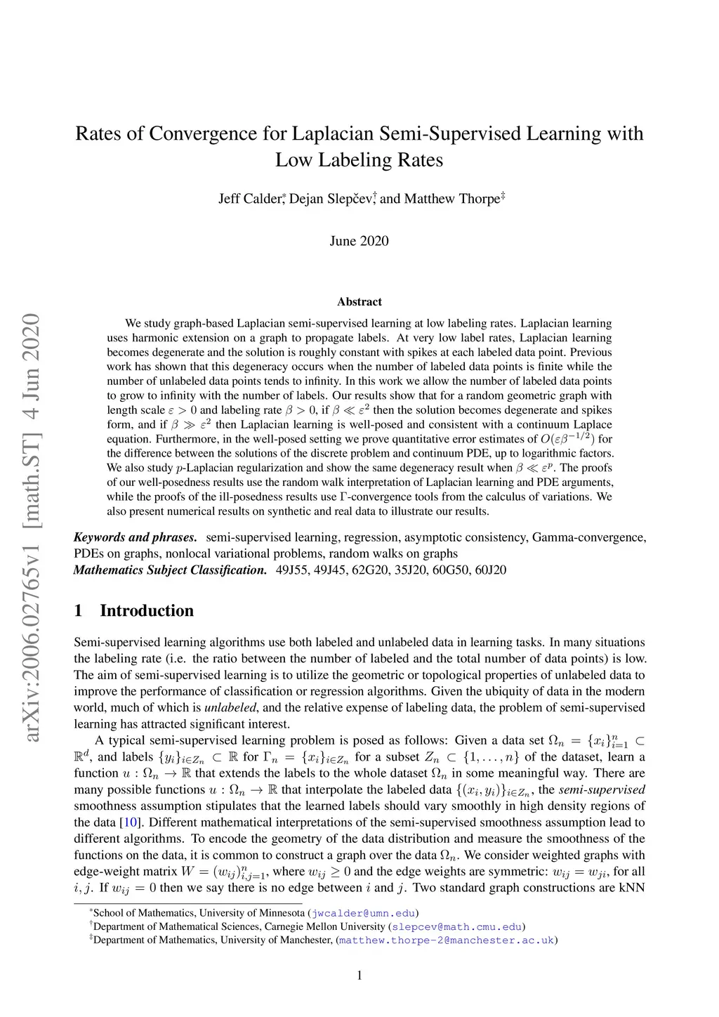 Rates of Convergence for Laplacian Semi-Supervised Learning with Low