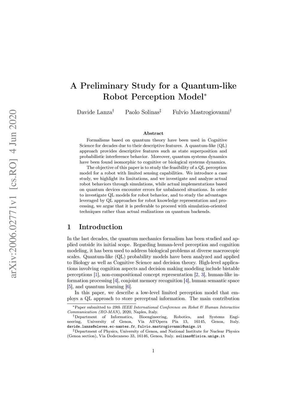 A Preliminary Study for a Quantum-like Robot Perception Model
