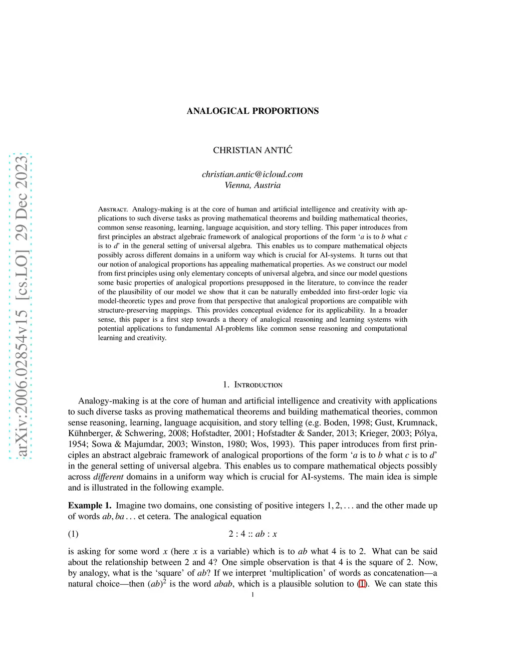 Analogical proportions