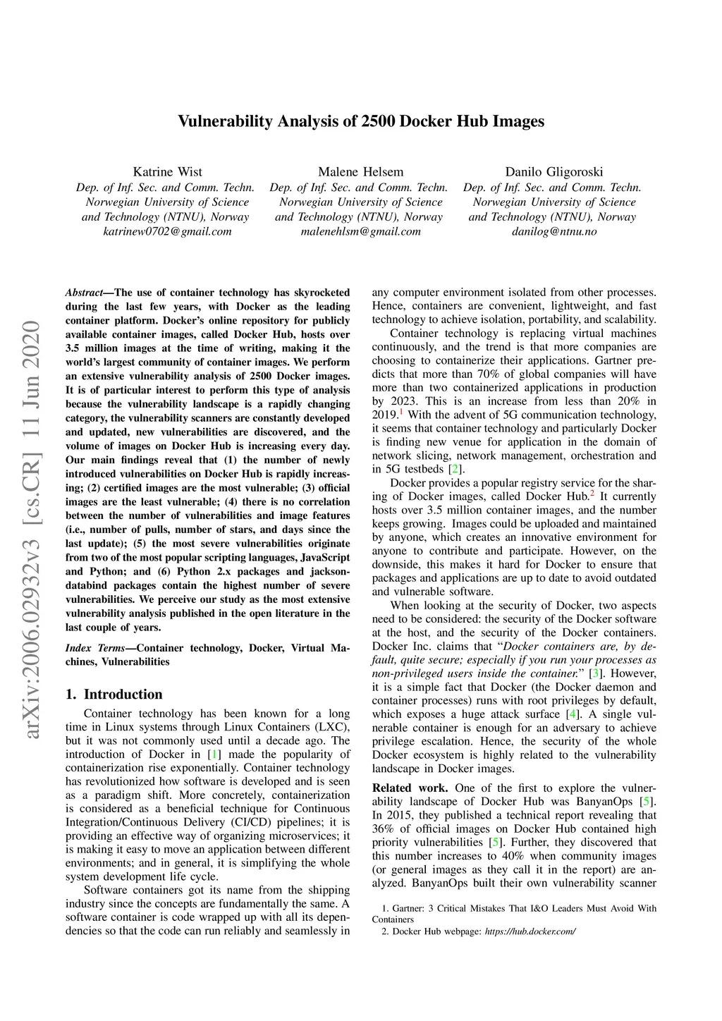 Vulnerability Analysis of 2500 Docker Hub Images
