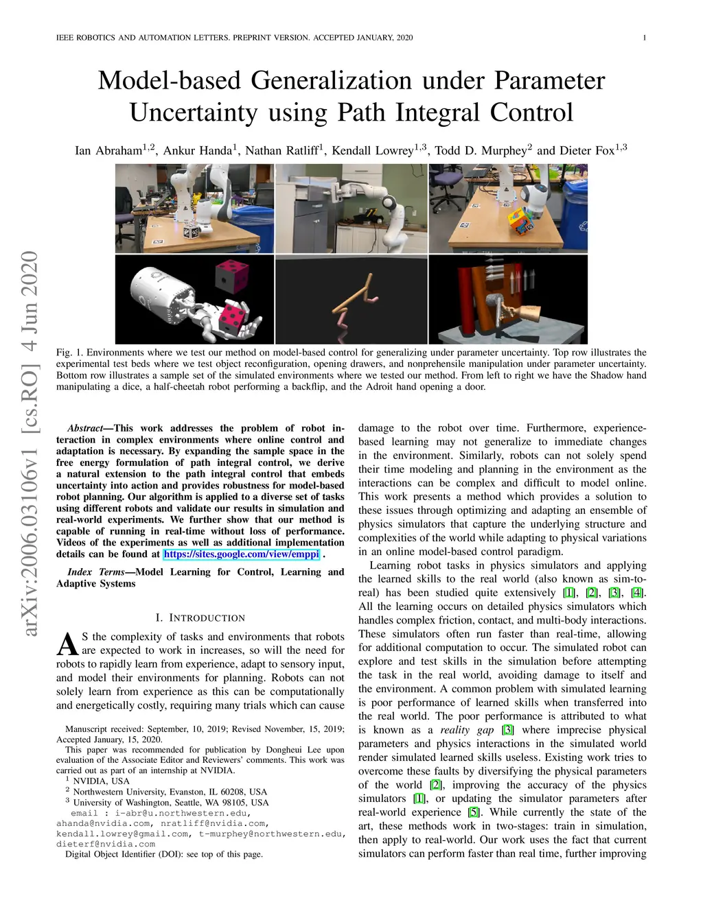 This work addresses the problem of robot interaction in complex environments where online control and adaptation is necessary. By expanding the sample space in the free energy formulation of path integral control, we derive a natural extension to the path integral control that embeds uncertainty into action and provides robustness for model-based robot planning. Our algorithm is applied to a diverse set of tasks using different robots and validate our results in simulation and real-world experiments. We further show that our method is capable of running in real-time without loss of performance. Videos of the experiments as well as additional implementation details can be found at https://sites.google.com/view/emppi.