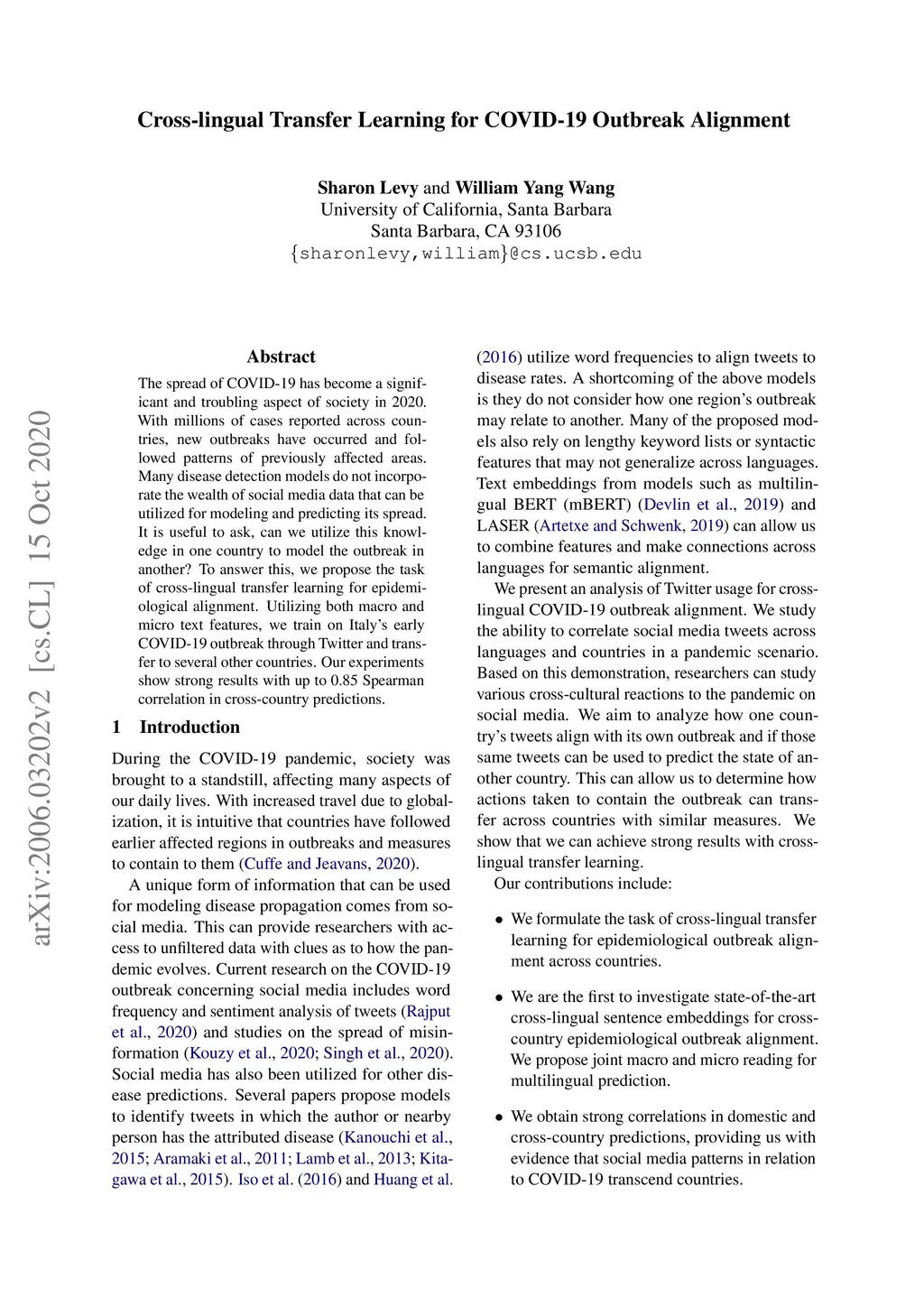 Cross-lingual Transfer Learning for COVID-19 Outbreak Alignment
