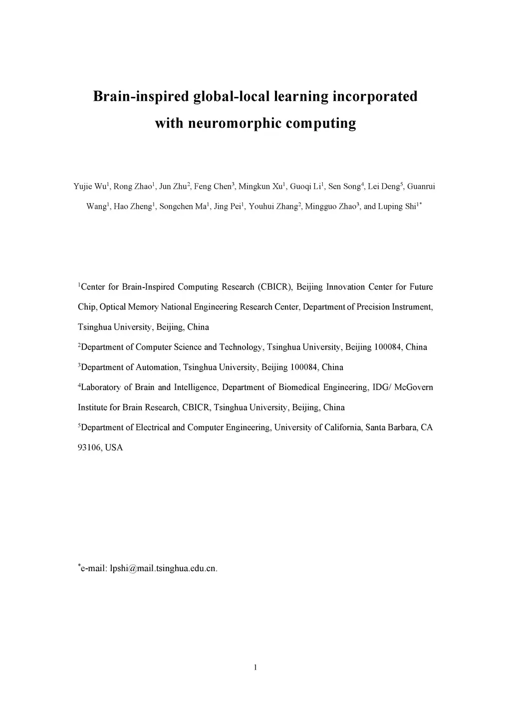 Brain-inspired global-local learning incorporated with neuromorphic
