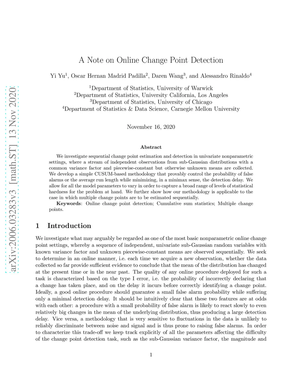 A Note on Online Change Point Detection