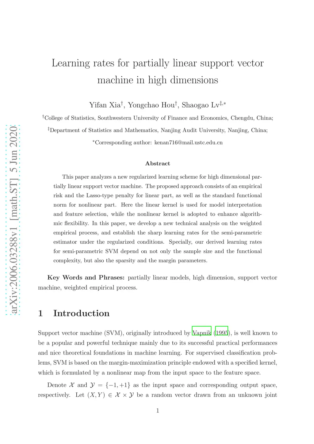 This paper analyzes a new regularized learning scheme for high dimensional partially linear support vector machine. The proposed approach consists of an empirical risk and the Lasso-type penalty for linear part, as well as the standard functional norm for nonlinear part. Here the linear kernel is used for model interpretation and feature selection, while the nonlinear kernel is adopted to enhance algorithmic flexibility. In this paper, we develop a new technical analysis on the weighted empirical process, and establish the sharp learning rates for the semi-parametric estimator under the regularized conditions. Specially, our derived learning rates for semi-parametric SVM depend on not only the sample size and the functional complexity, but also the sparsity and the margin parameters.
