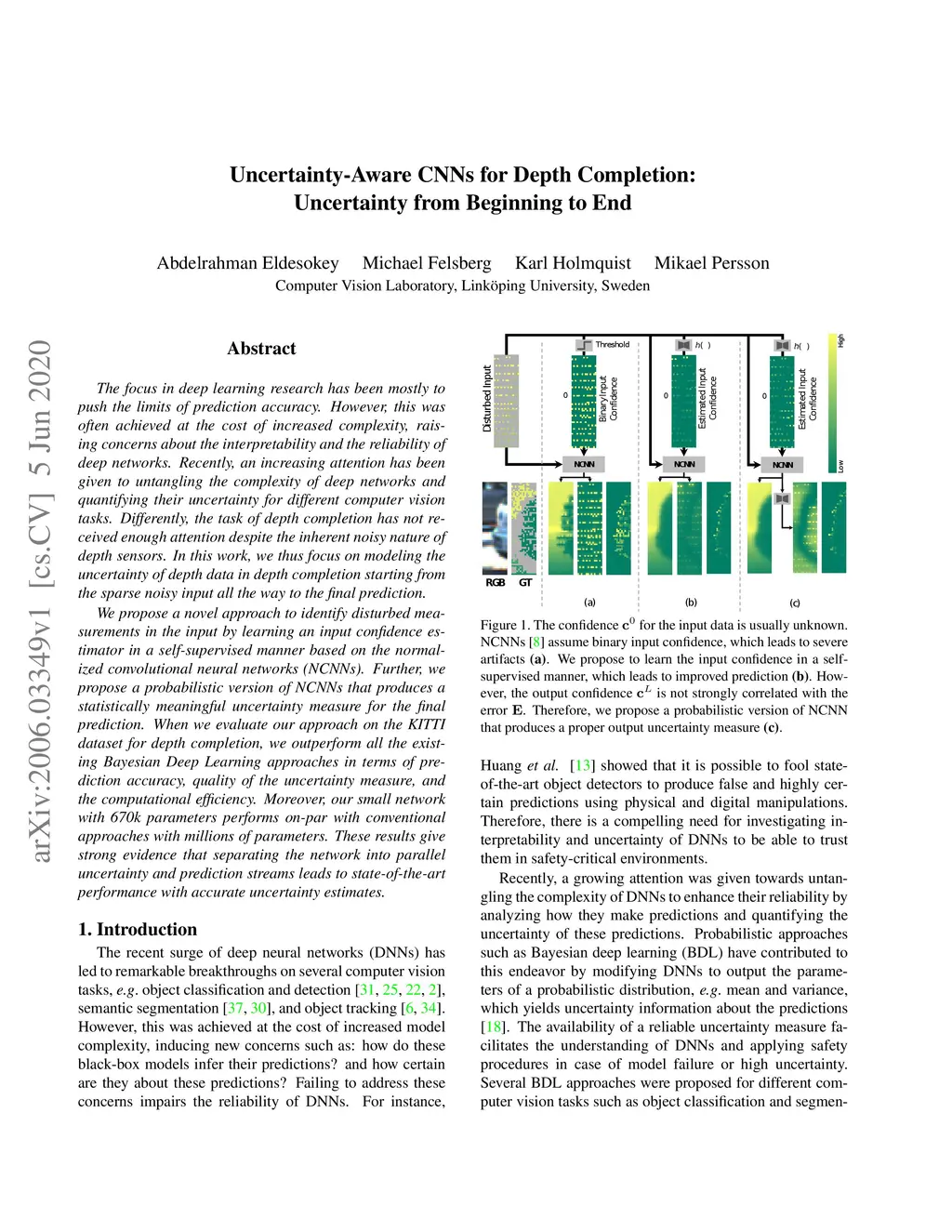 Uncertainty-Aware CNNs for Depth Completion: Uncertainty from Beginning