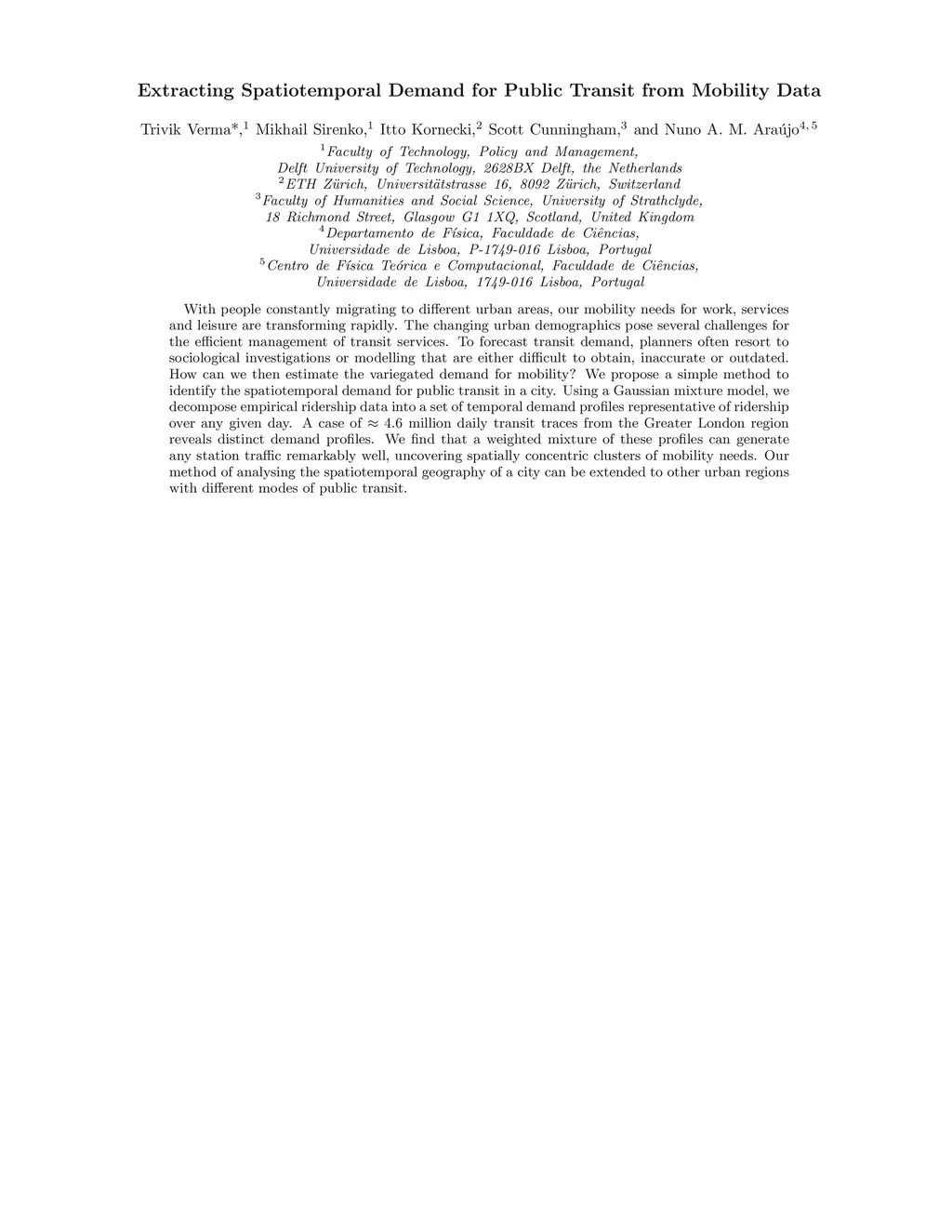 With people constantly migrating to different urban areas, our mobility needs for work, services and leisure are transforming rapidly. The changing urban demographics pose several challenges for the efficient management of transit services. To forecast transit demand, planners often resort to sociological investigations or modelling that are either difficult to obtain, inaccurate or outdated. How can we then estimate the variegated demand for mobility? We propose a simple method to identify the spatiotemporal demand for public transit in a city. Using a Gaussian mixture model, we decompose empirical ridership data into a set of temporal demand profiles representative of ridership over any given day. A case of approximately 4.6 million daily transit traces from the Greater London region reveals distinct demand profiles. We find that a weighted mixture of these profiles can generate any station traffic remarkably well, uncovering spatially concentric clusters of mobility needs. Our method of analysing the spatiotemporal geography of a city can be extended to other urban regions with different modes of public transit.