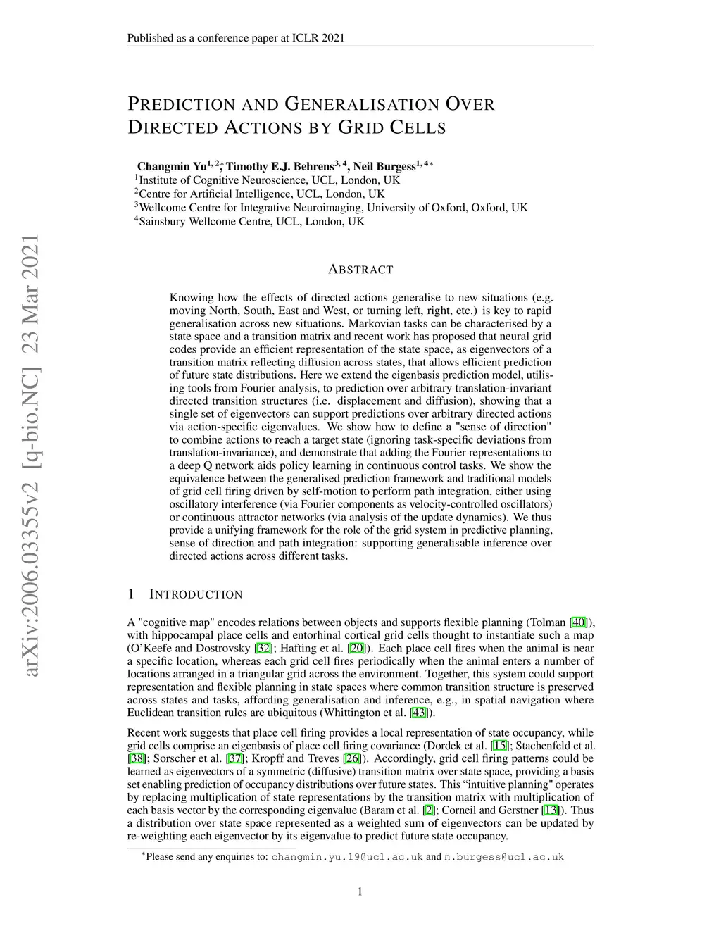 Prediction and Generalisation over Directed Actions by Grid Cells