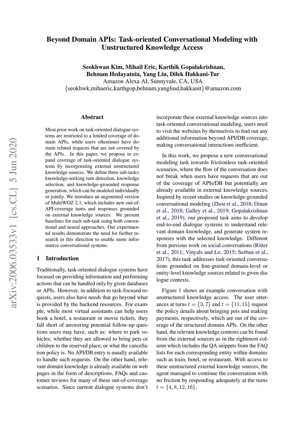 Beyond Domain APIs: Task-oriented Conversational Modeling with
