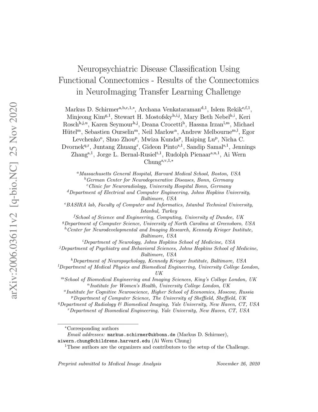 Neuropsychiatric Disease Classification Using Functional Connectomics --