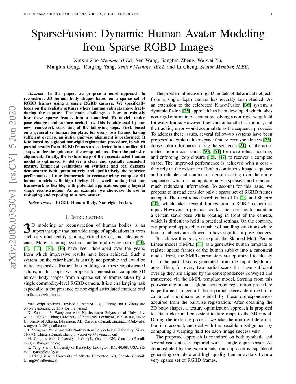 SparseFusion: Dynamic Human Avatar Modeling from Sparse RGBD Images