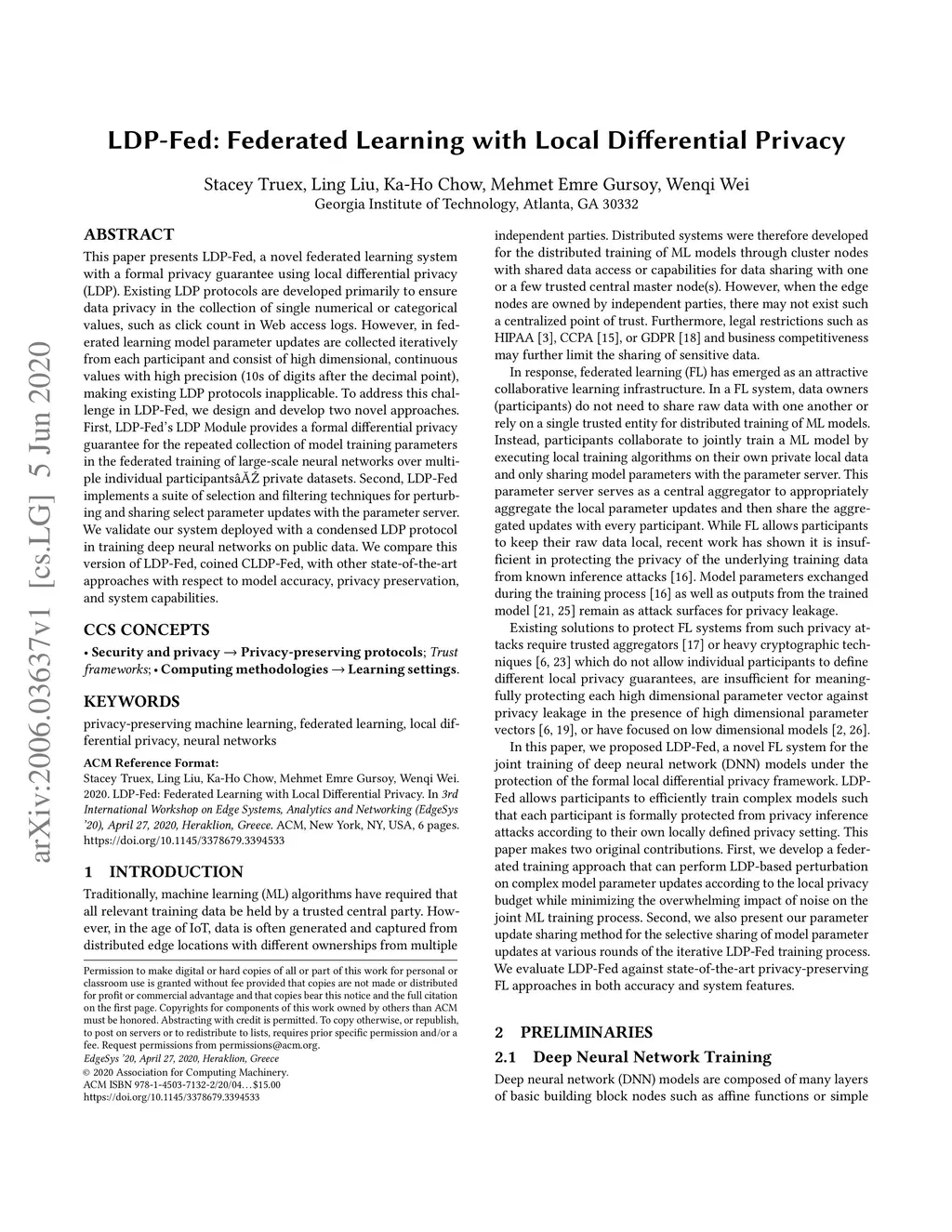 LDP-Fed: Federated Learning with Local Differential Privacy