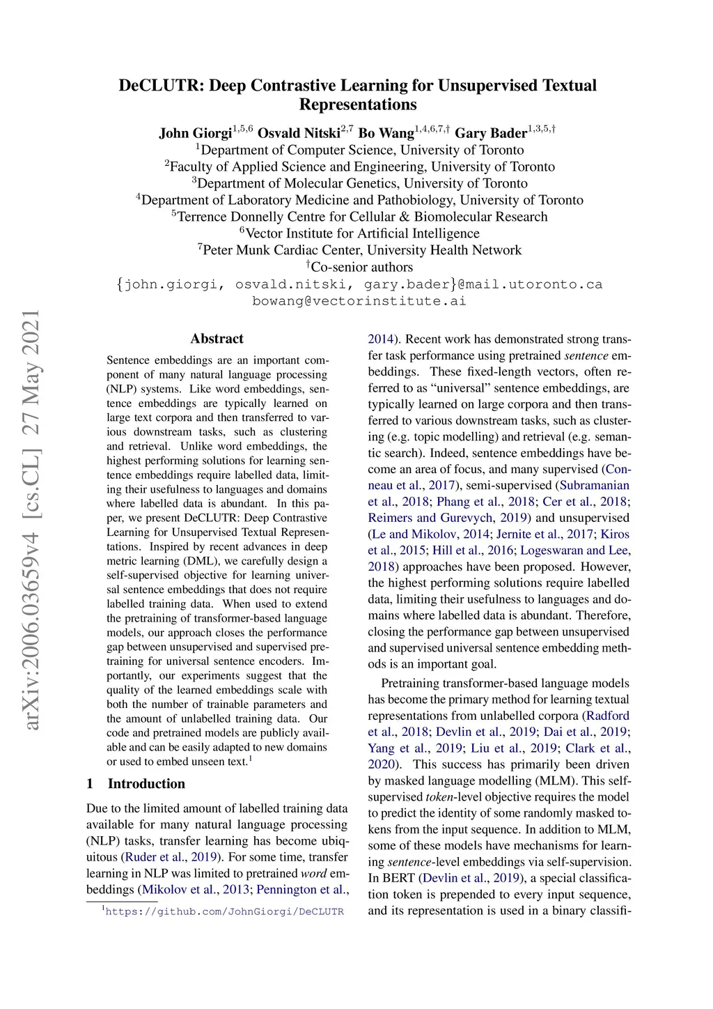 DeCLUTR: Deep Contrastive Learning for Unsupervised Textual