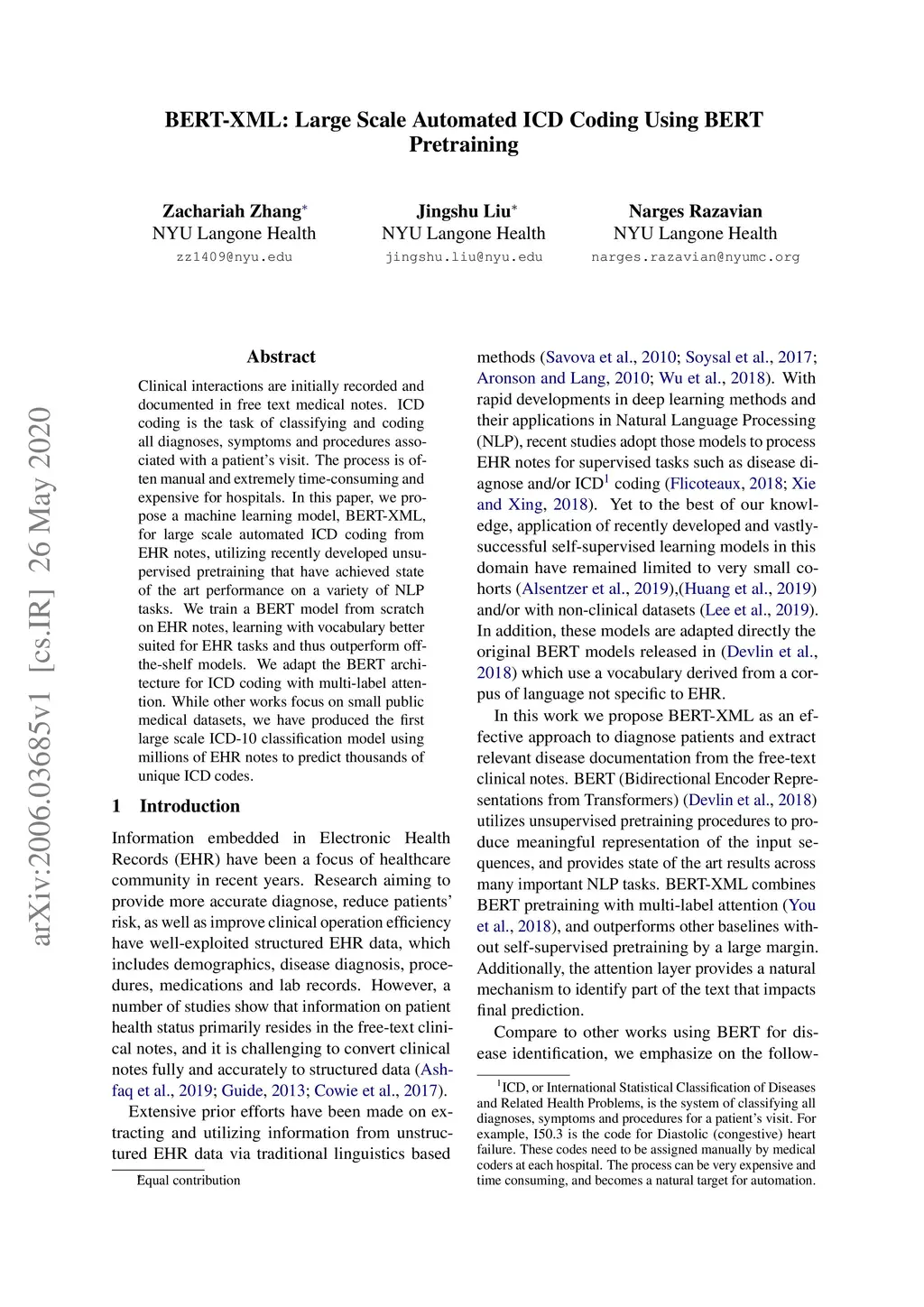 BERT-XML: Large Scale Automated ICD Coding Using BERT Pretraining